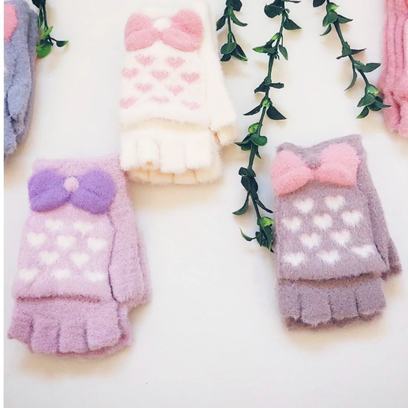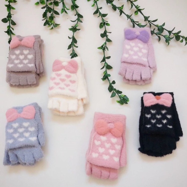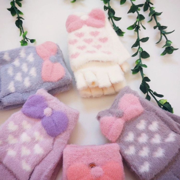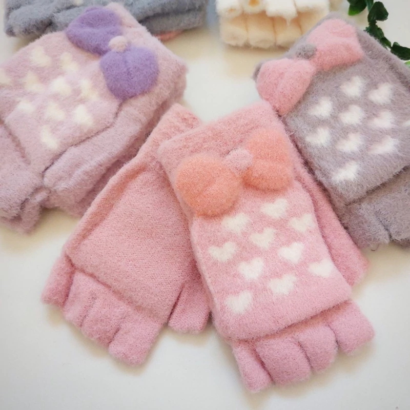 دستکش نیم انگشتی کلاهکدار وارداتی طرح پاپیون مناسب 5 تا 10 سال