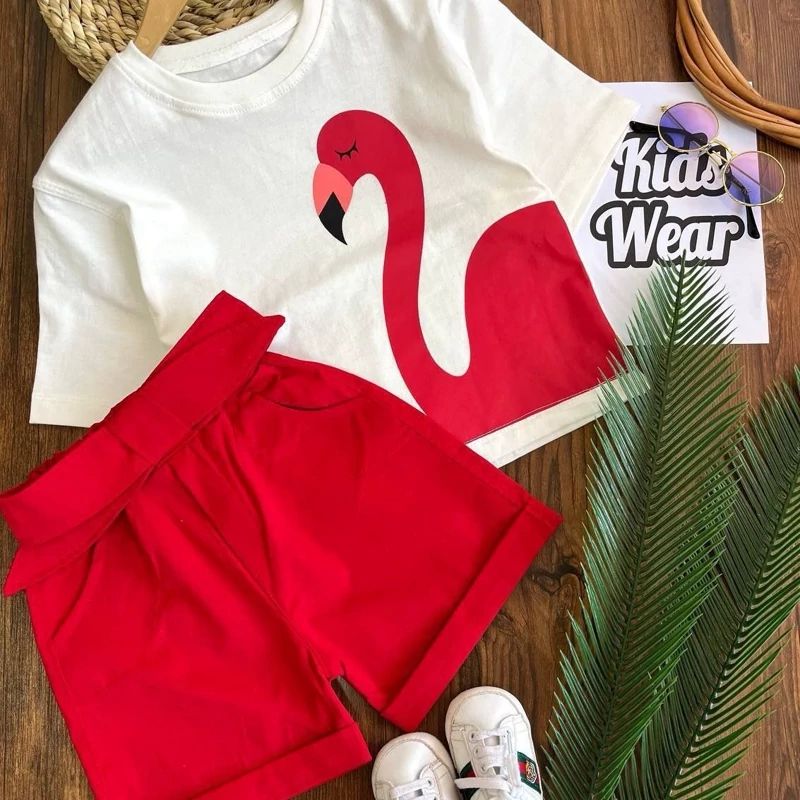 🦩ست کراپ و شورتک طرح فلامینگو🦩